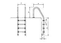 - Escaleras con pasamanos modelo Standard, para piscinas enterradas, fabricadas en tubo Ø 43 mm de acero inoxidable acabado pulido brillante.
